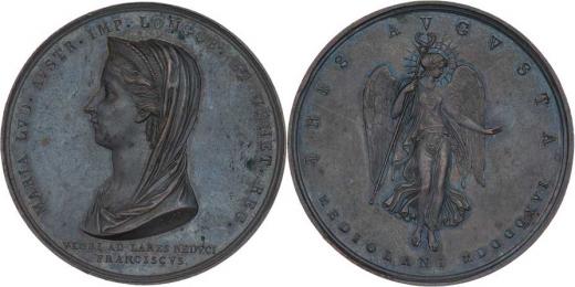 Manfredini - úmrtí císařovny v Miláně 1816 - portrét zleva, opis a nápis / letící Niké čelně, opis, Sign., měď 42mm, 34.679g, M.2445(Ag), H.3439(Ag), hr., pat.