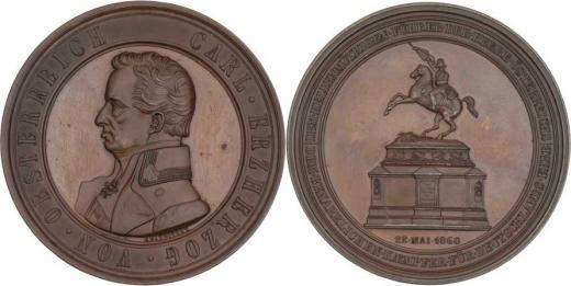 Radnitzky - na odhalení pomníku ve Vídni 22.5.1860 - poprsí zleva, opis / jezdecká socha na podstavci, opis, Sign., měď 64 mm, M.2690(AR), H.3578(AR), pat.