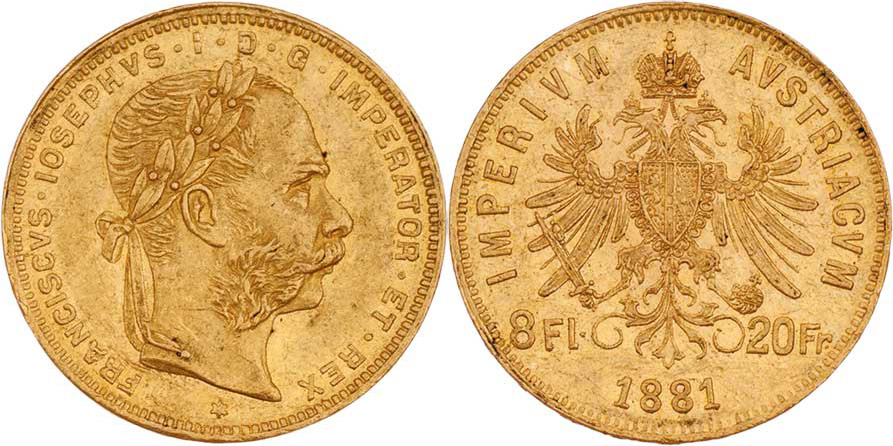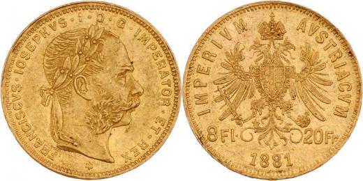 8 Zlatník 1881 (pouze 62.000 ks), 6.450g, nep.hr., nep.rysky, pěkná patina