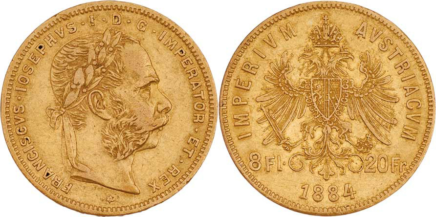 8 Zlatník 1884 (pouze 91.000 ks), 6.416g, nep.hr., nep.rysky, pěkná patina