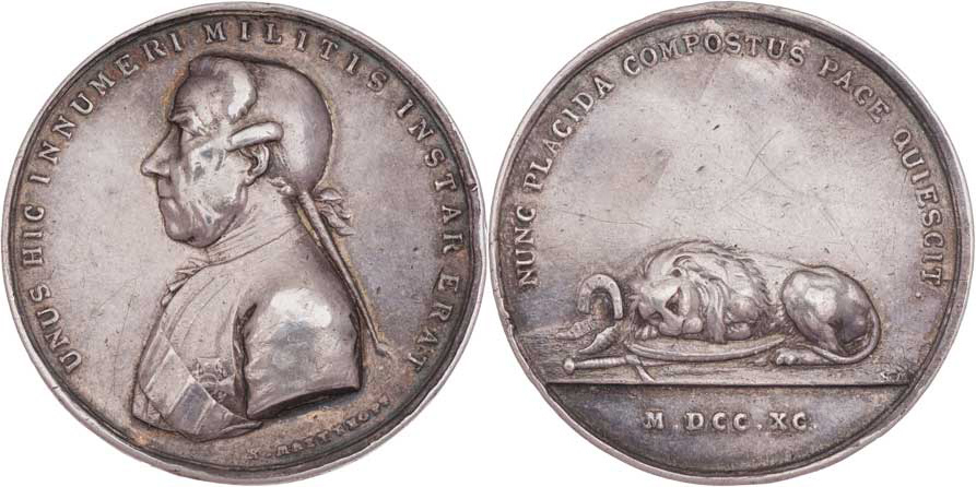 Matzenkopf - AR úmrtní medaile 1790 - poprsí zleva, opis / umírající lev, opis a vročení, Sign., 45mm, 32.350g, M.2183, H.7435, hrany, vl.škr., rysky, patin