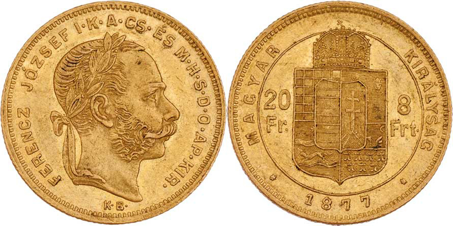 8 Zlatník 1877 KB, 6.440g, nep.hr., nep.rysky, pěkná patina