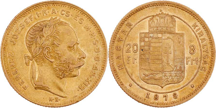 8 Zlatník 1878 KB, 6.446g, nep.hr., nep.rysky, pěkná patina, téměř
