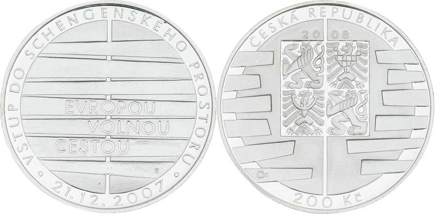 200 Kč 2008 - Vstup do Schengenského prostoru, KM.99 (Ag900, 13.00g, 16.000ks), kapsle, etue, karta
