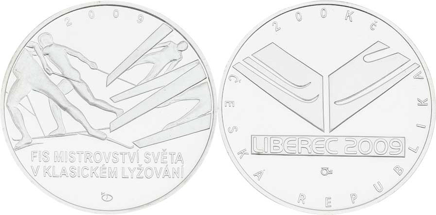 200 Kč 2009 - Mistrovství světa v klasickém lyžování, KM.106 (Ag900, 13.0g, 15.200ks), kapsle, etue, karta