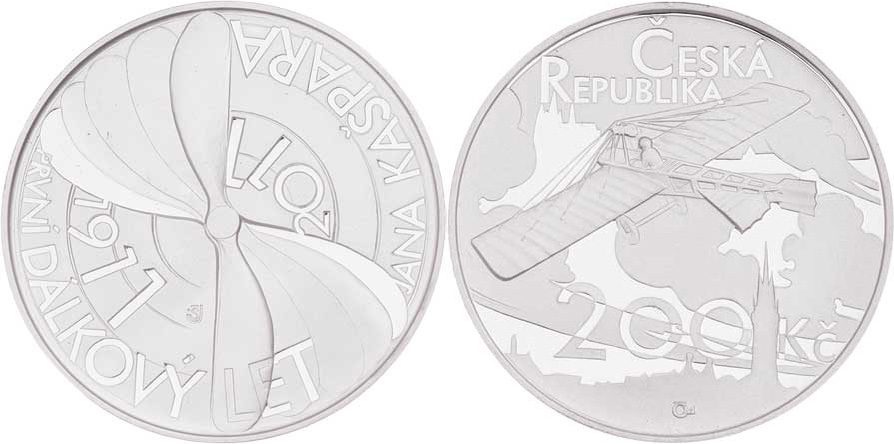 200 Kč 2011 - 100 let letu Jana Kašpara, KM.120 (Ag900, 13.0g, 11.600ks), kapsle, etue, karta