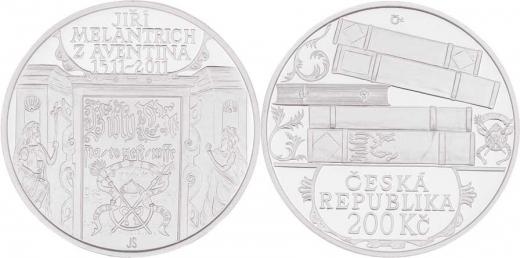 200 Kč 2011 - 500 let narození Jiřího Melantricha z Aventina, KM.121 (Ag900, 13.0g, 11.600ks), kapsle, etue