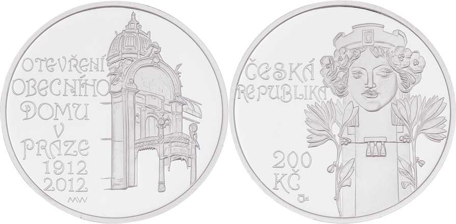 200 Kč 2012 - 100 let Obecního domu v Praze, KM.130 (Ag900, 13.0g, 13.600ks), kapsle, etue, karta