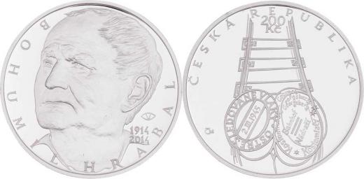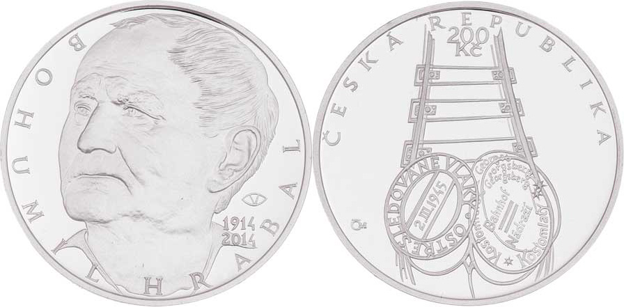 200 Kč 2014 - 100 let narození Bohumila Hrabala, (Ag900, 13.0g, 11.700ks), kapsle, etue, karta