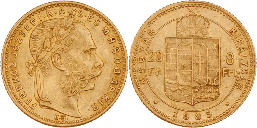 8 Zlatník 1885 KB, 6.430g, nep.hr., nep.rysky, pěkná patina