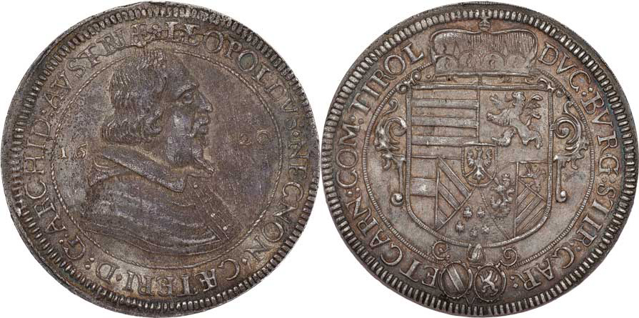 Tolar 1620, Hall, M-A.109, podobný KM.264.1, církevní šat, koruna bez perel, dva malé znaky dole v reversu, 28.145g, dr.vady razidla, pěkná patina