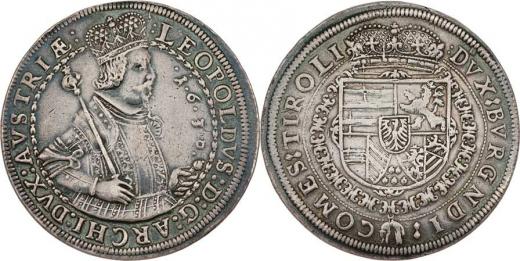 Tolar 1630, Hall, M-A.127, M-T.472, KM.629.2, světský šat, znak s řádem Zlatého rouna, koruna s perlami, 28.461g, stopa po oušku, mírně hlazený, tmavá patina