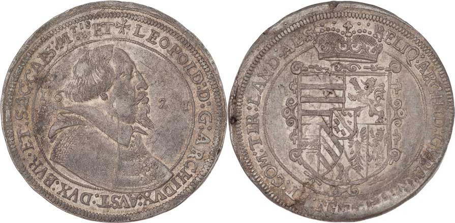 Tolar 1621, Ensisheim, M-A.111, KM.257.2, M-T.604, církevní šat, letopočet dělený poprsím, 28.416g, dr.vady materiálu, nedor., pěkná patina