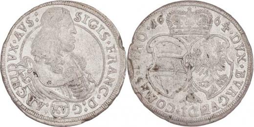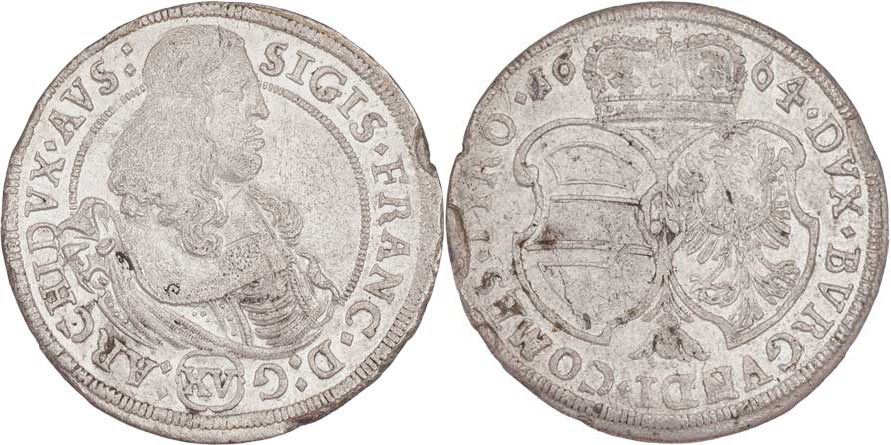 XV Krejcar 1664, Hall, M-A.163, pouze 5.548g, patrně suberátní dobové falzum, nep.vylomený okraj, hr. R!