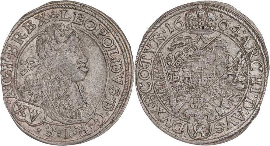 XV Krejcar 1664, Vídeň-Cetto, Nech.1909b, M-A.163, Höll.WIE.64.2.12, 5.844g, mírně exc., nep.nedor., škr. v reversu, pěkná patina