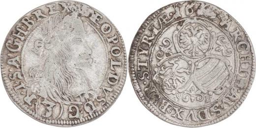 3 Krejcar 1665 SH, Štýrský Hradec-Haydt, Nech.2206, M-A.164, 1.661g, vady materiálu, vady razidla, patina