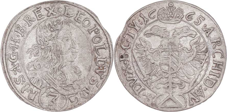 3 Krejcar 1665, Neuburg am Inn-Triangel, Nech.2036, M-A.164, 1.521g R!