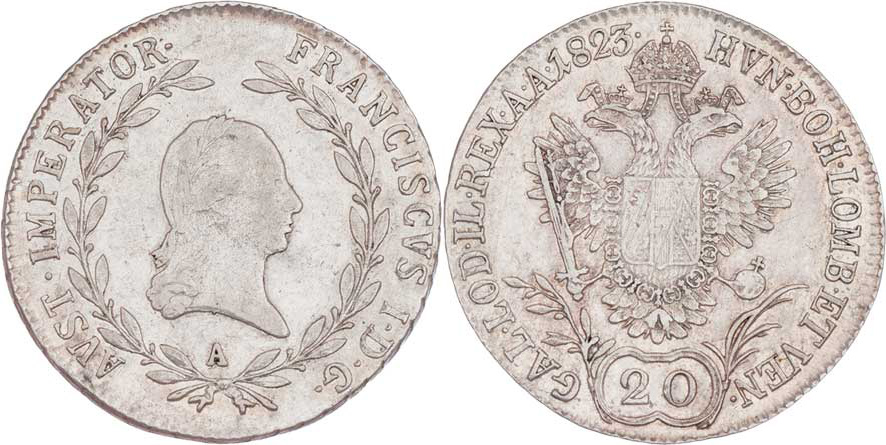 20 Krejcar 1823 A, 6.676g, mírně just., nep.hr., nep.rysky, pěkná patina