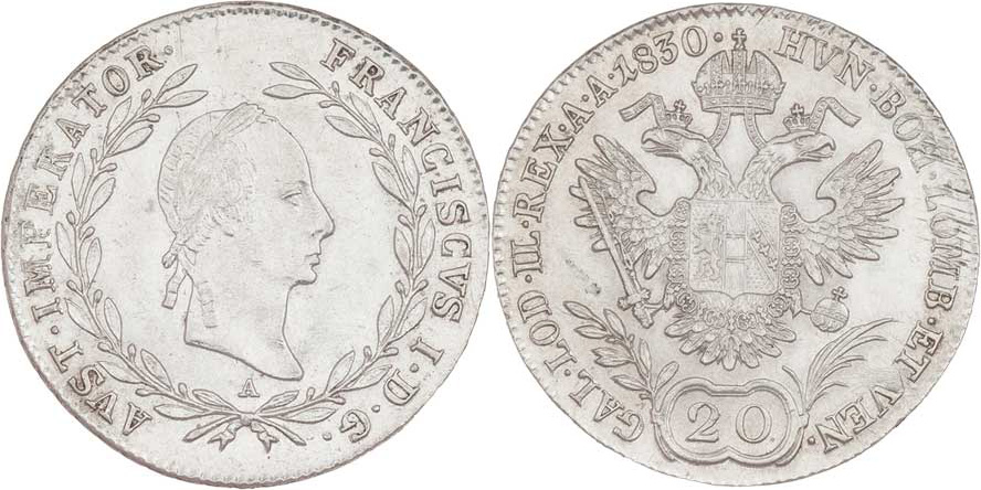 20 Krejcar 1830 A, 6.708g, nep.rysky