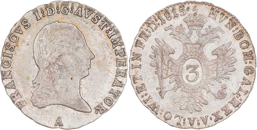 3 Krejcar 1815 A, 1.733g, pěkná patina