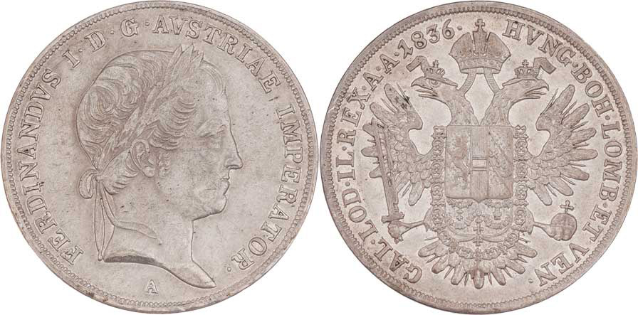 1/2 Tolar 1836 A - opis "FERDINANDVS...", 13.978g, hr., dr.rysky R!