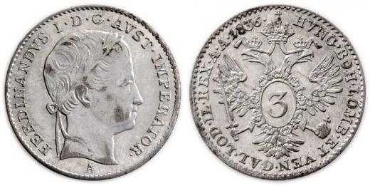 3 Krejcar 1836 A - FERDINANDUS, 1.645g, nep.vada razidla, patina, téměř R!