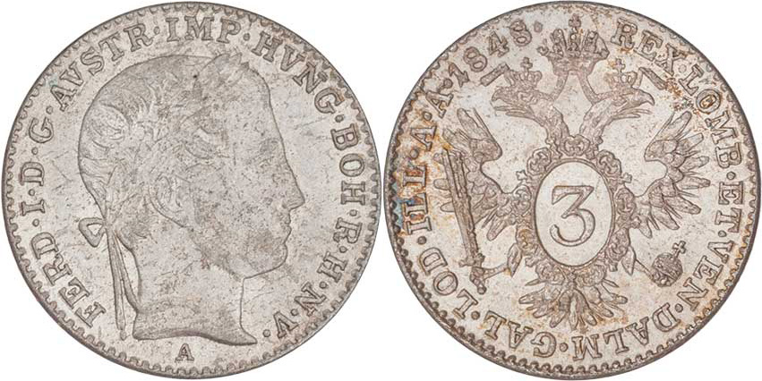 3 Krejcar 1848 A, 1.655g