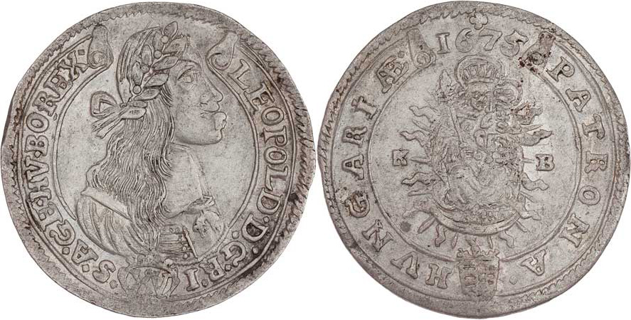 XV Krejcar 1675 KB, Nech.1156, Höll.KB.75.1.1, Husz.1423, 6.015g, kraj.stř., pěkná patina