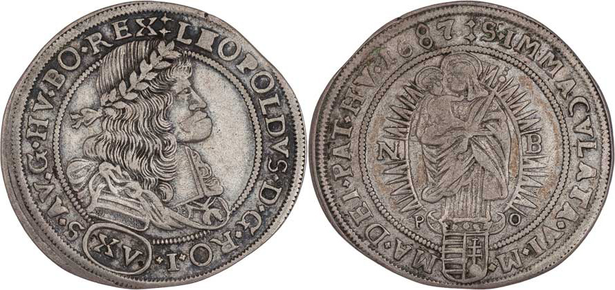 XV Krejcar 1687 NB-PO, Nagybanya-Österreicher, Nech.1539, Husz.1435, 5.372g, nep.exc., nep.nedor., pěkná patina, téměř R!