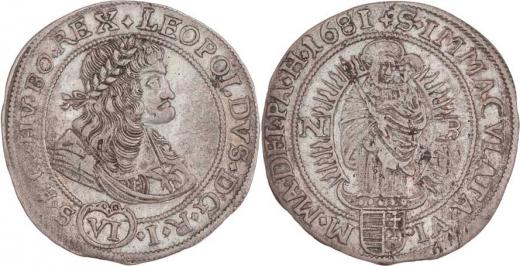 VI Krejcar 1681 NB, Nagybanya-Mittermayer, malý portrét, Nech.1562, Husz.1456/1455, 3.592g, krajový střížek, pěkná patina RR!