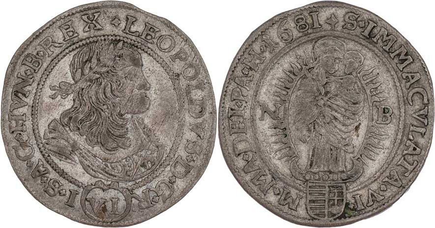 VI Krejcar 1681, Nagybanya-Mittermayer, Nech.1562, Husz.1455, 3.148g, nep.nedor., nep.just., patina R!
