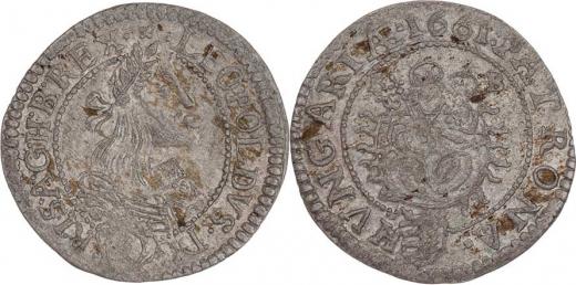 3 Krejcar 1661 KB, Nech.1203, Husz.1463 - úzký portrét, 1.635g, pěkná patina R!