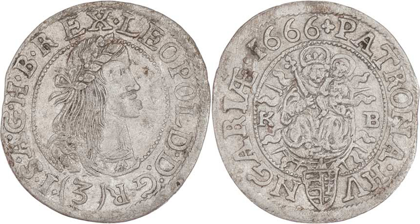 3 Krejcar 1666 KB, Nech.1209, Husz.1465, 1.578g, nep.nedor., pěkná patina