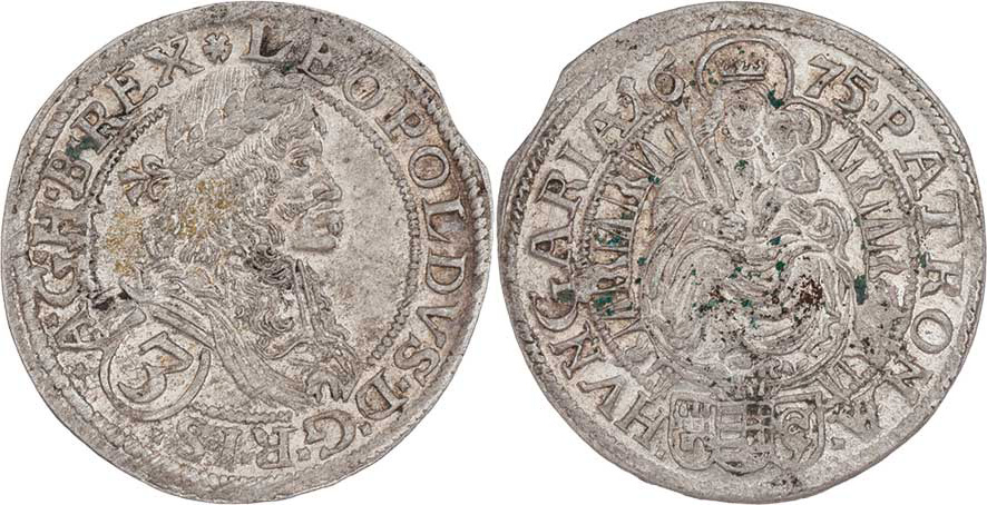 3 Krejcar 1675 GC, Bratislava-Cetto, Nech.1655, Husz.1476, 1.652g, krajový střížek, nep.skvrnky R!