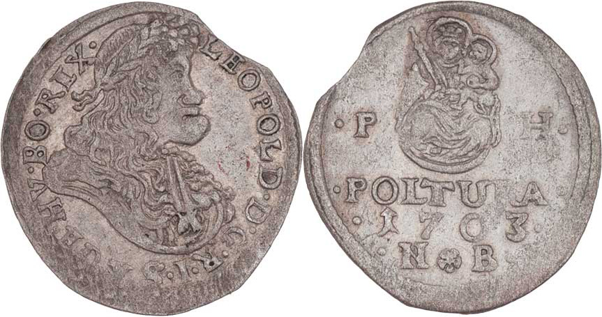 Poltura 1703 NB, Nagybanya-Block, Nech.1601, Husz.1484, 0.939g, krajový střížek, nep.nedor., pěkná patina R!