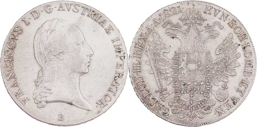 Tolar konvenční 1821 B, 28.126g, nep.just., nep.hr., nep.rysky