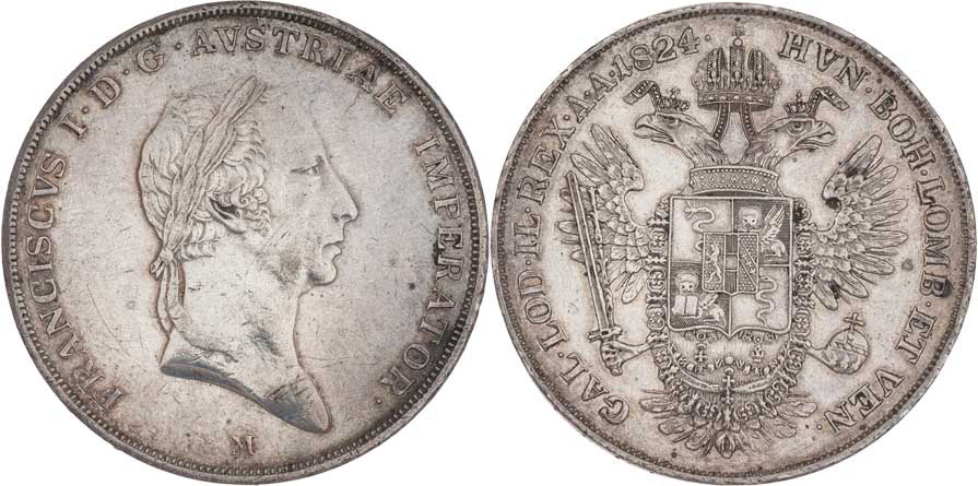 Scudo 1824 M, Milán, M-A.319, P.24, 25.973g, nep.vada razidla, nep.hr., nep.rysky, patina R!