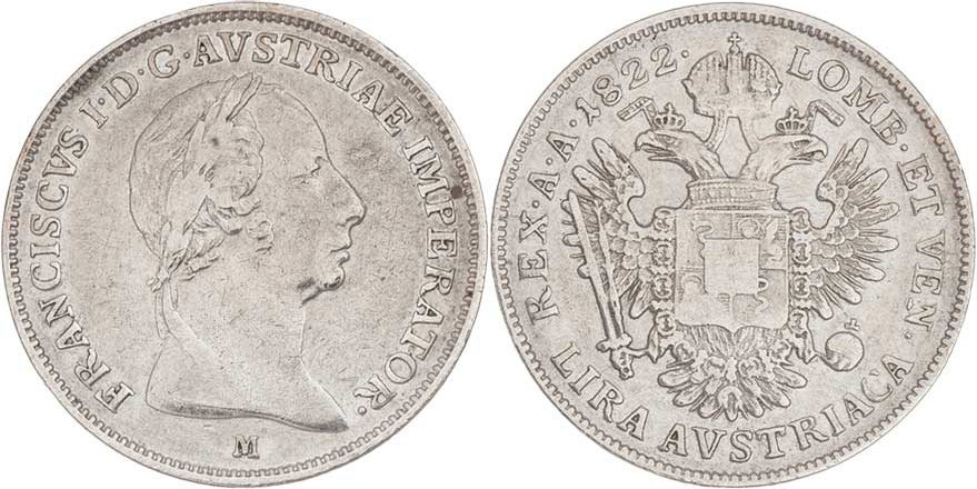 Lira 1822 M, Milán, M-A.318, P.26, 4.269g, dr.hr., dr.rysky R!