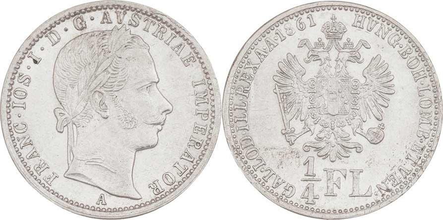 1/4 Zlatník 1861 A, 5.338g, nep.hr., nep.rysky