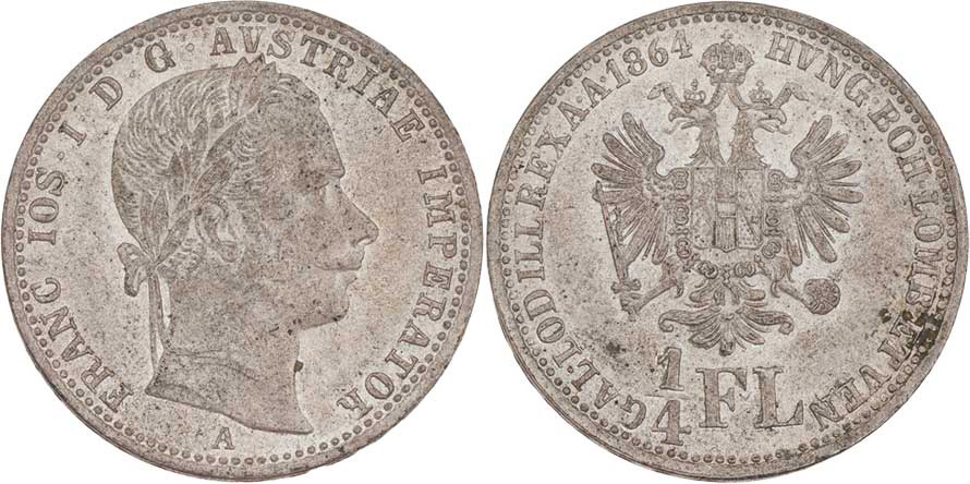 1/4 Zlatník 1864 A, 5.379g, skvrnky, pěkná patina