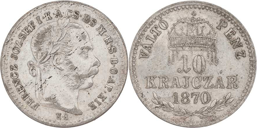 10 Krejcar 1870 KB - krátký opis, 1.606g, nep.rysky, pěkná patina