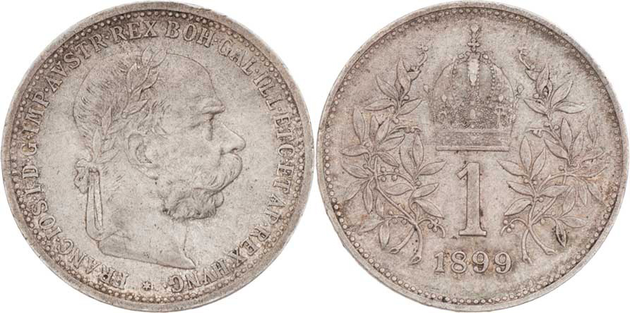 Koruna 1899, 4.994g, nep.hr., nep.rysky, pěkná patina, téměř