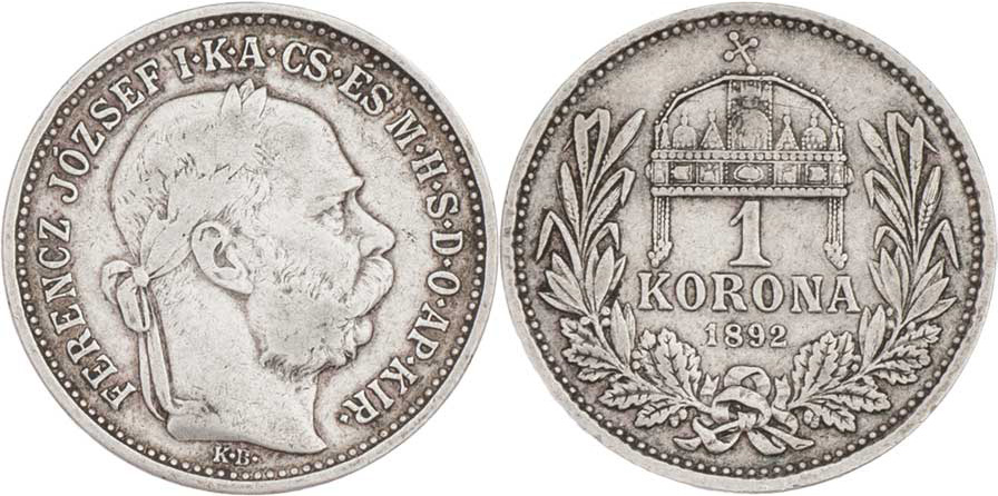 Koruna 1892 KB, 4.927g, nep.hr., dr.rysky, patina