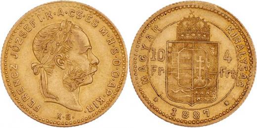 4 Zlatník 1887 KB (pouze 39.000 ks), 3.209g, nep.hr., nep.rysky, pěkná patina R!