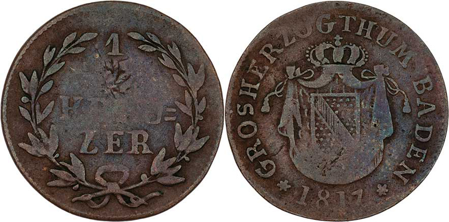 1/2 Krejcar 1817, KM.171 - nominál dodatečně upraven na 1 Krejcar (patrně ke škodě oběhu !!), patina R!