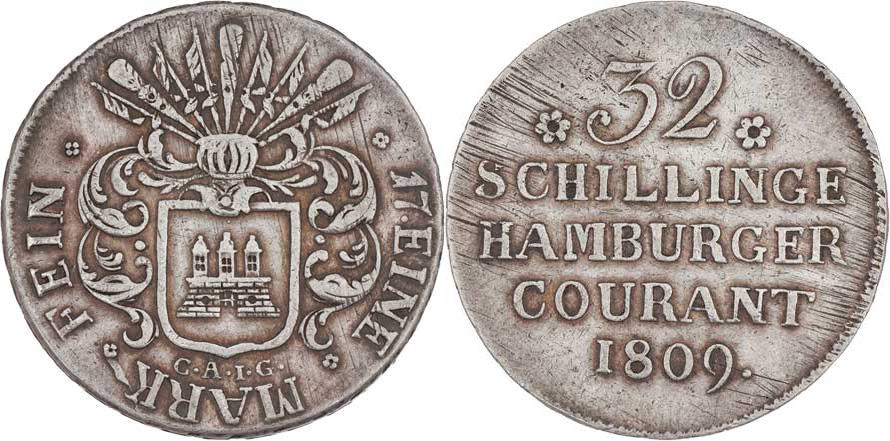 32 Schilling 1809 CAIG, KM.242, 14.145g, just., nep.hr., nep.rysky, patina