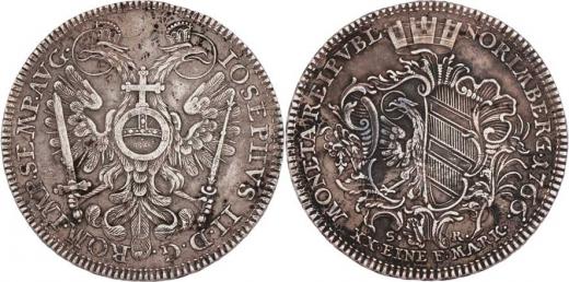 1/2 Tolar 1766 SR - s titulem Josefa II., KM.355, 13.924g, skvrny, patina, téměř