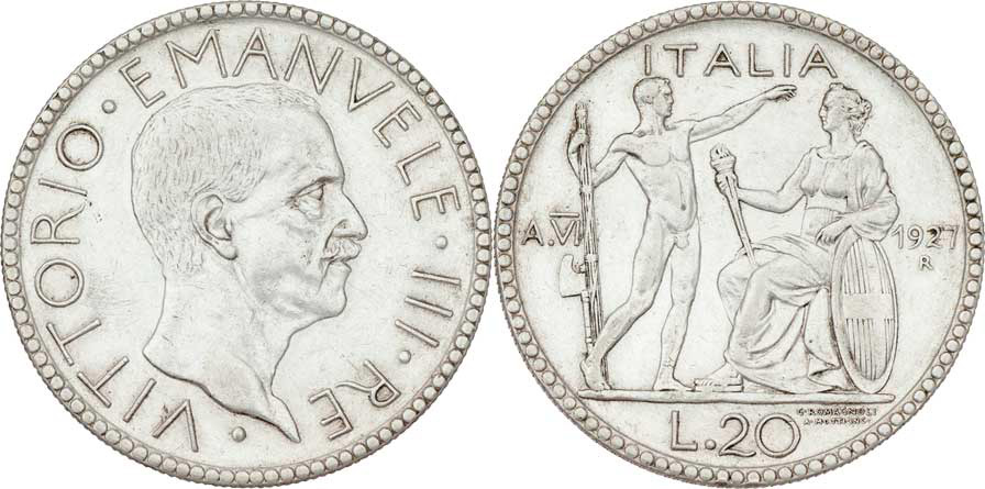 20 Lira 1927 - VI.rok vlády, KM.69, 14.950g, dr.hr., nep.rysky R!