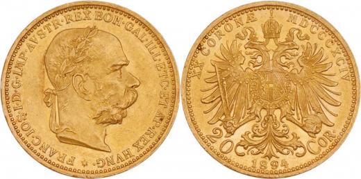20 Koruna 1894, 6.779g, nep.hr., nep.rysky