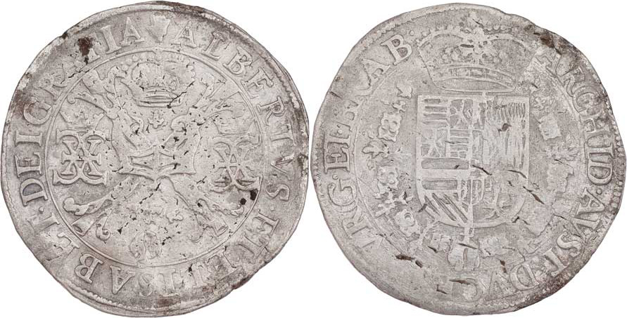 Patagon (Tolar) b.l., Brabant-Antverpy, KM.35.1, podobný jako FW.II.11315, 27.502g, dr.vady materiálu, nedor., nep.dvojráz, patina